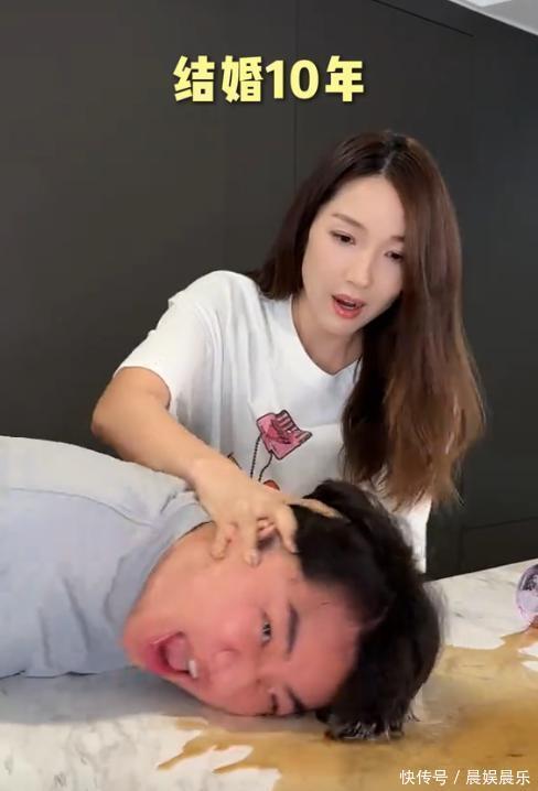 视频内容是两个人恋爱一个月到十年的变化,两人刚在一起时就非常温柔,两人在一起久了就变暴躁了。评论区有人说这才是真实的夫妻生活,妻子拿着他的头擦桌子,网友说祖蓝带头巾的原因找到了,原来是在家用头当抹布。